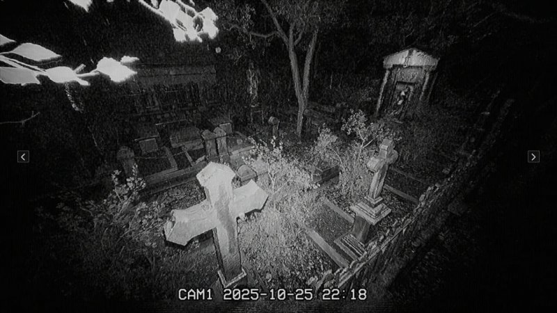Большую часть времени главный герой сидит в тесной сторожке и следит за обстановкой через камеры наблюдения. На первый взгляд в кадре не происходит ничего необычного, но любые мелочи, выбивающиеся из привычной картины, сразу заставляют насторожиться и выйти наружу с проверкой. Само кладбище открывается не сразу, а постепенно, из за чего каждый новый участок ощущается все менее уютным. Темнота, узкий обзор и почти полная тишина делают атмосферу особенно нервной.
