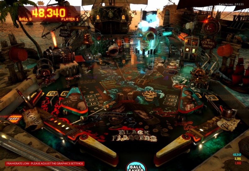 Pinball Wicked - современная игра, воссоздающая дух классического пинбола в цифровом формате. За разработку отвечает студия Formslingers, а за плавную и реалистичную физику отвечает мощный движок Unreal Engine 5. Главный акцент сделан на уникальном столе Black Flaggers, на котором практически все оформлено в пиратском стиле: гремят пушки, сверкает вода и оживают легенды морей. Тут вас ожидают интерактивные детали - например, механический череп пирата, необычные корабельные ловушки и тематические пандусы, погружающие в атмосферу захватывающих морских приключений.