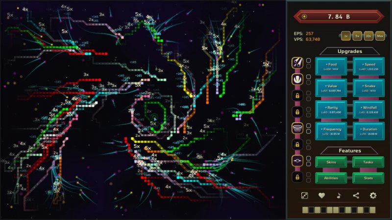 Описание игры: Auto Snakes in Outer Space - спокойный инкрементал про яркую змеиную общину, вся фишка которой завязана на росте общей эффективности. Игра делает ставку на размеренный прогресс: со временем открываются восемь особых умений, а механика престижа приносит постоянные усиления, полезные для новых витков развития. С оформлением тут полный порядок. Для питомцев подготовили больше 150 вариантов внешности, так что собирать необычные образы действительно интересно. Свежие косметические награды выдают за выполнение заданий. После завершения основной кампании приключение не обрывается, поскольку затем становится доступен бесконечный режим с упором на дальнейшую раскачку. Сам процесс устроен максимально просто и за счет этого затягивает. Существа самостоятельно собирают еду, копят ресурсы, а затем все накопленное можно пустить на улучшения. Прокачка повышает темп передвижения и увеличивает запас провизии, что напрямую влияет на общий темп роста. Подход к игре можно выбрать под настроение. Если хочется расслабиться, достаточно наблюдать за тем, как вся система работает сама по себе. Если же тянет вмешаться, управление мышью позволяет направлять змей вручную и быстрее притягивать к ним ближайшие съедобные объекты. Скачать игру вы сможете у нас через торрент.